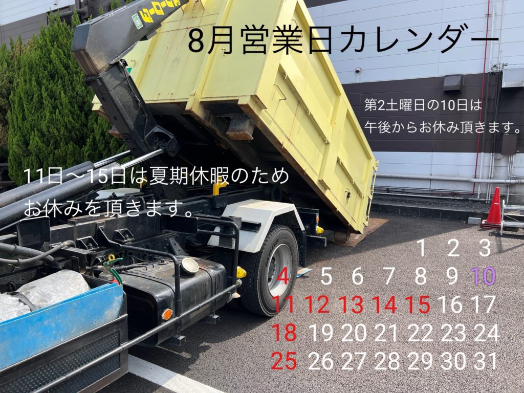8月営業日カレンダー